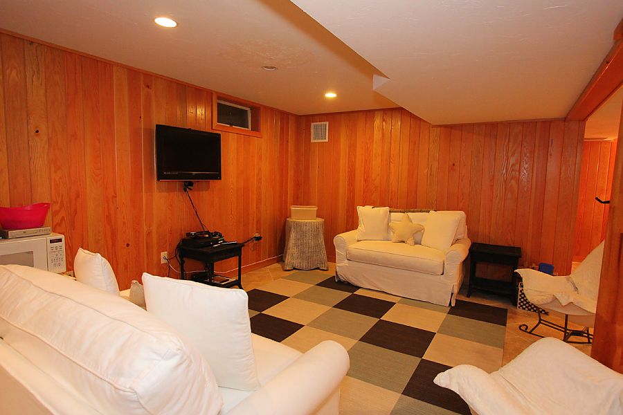 Bedroom 5: Combined Lower Level TV Room with 2 sleep sofas and alcove with 2 SinglesLinens