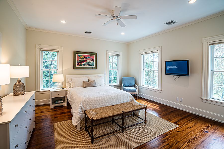 Occupancy Limit:8Bedrooms:4Bedroom Descriptions:Primary Bedroom: 2nd Level, King, TV, ceiling fan, bath (shower only)