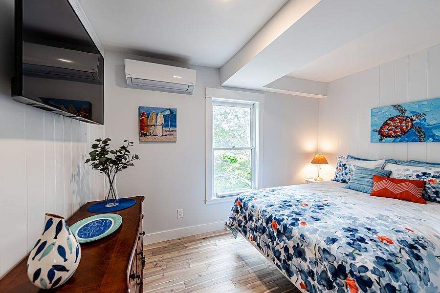 Bedroom 2: 1st Level, Queen, TV, bath in hall 1st Level