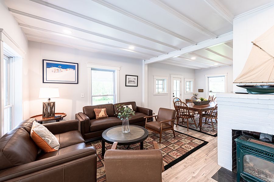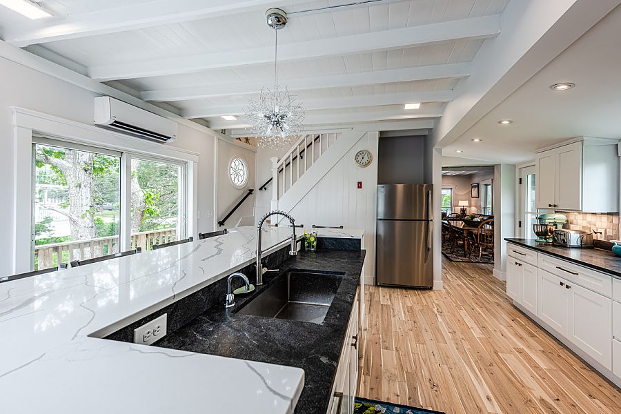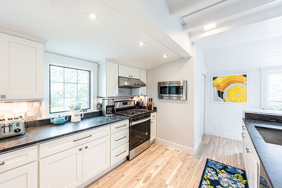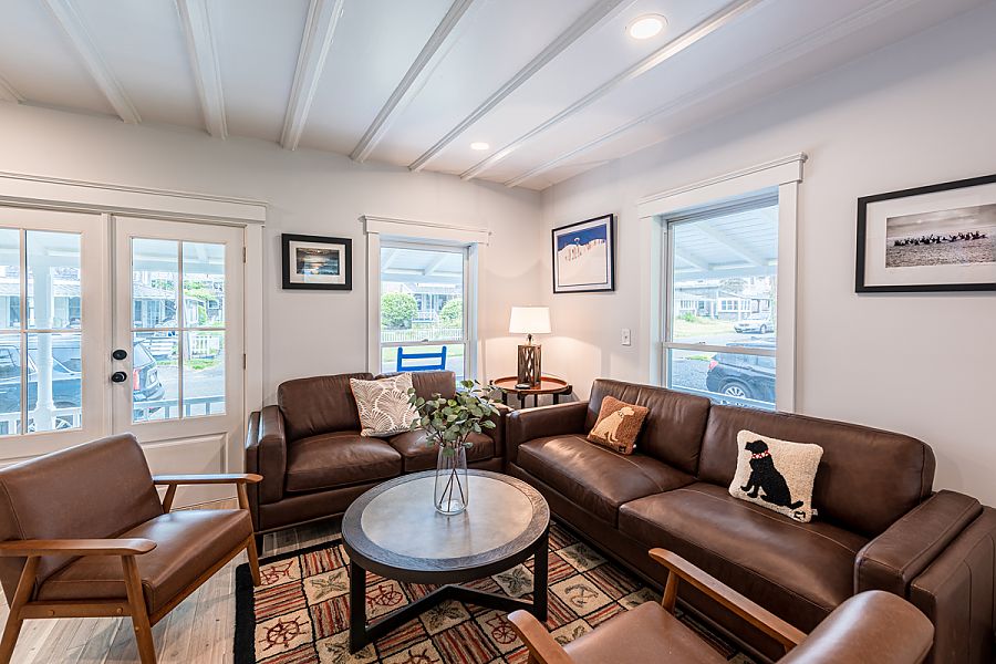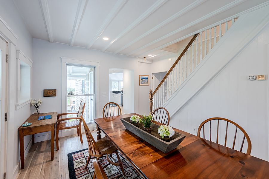 Set in the heart of Oak Bluffs center, this newly renovated home features water views, walk to Inkwell Beach and Pay Beach and walk to the town center all within 5 minutes from the house. The neighborhood is lovely and the street is lined with homes of a similar character.