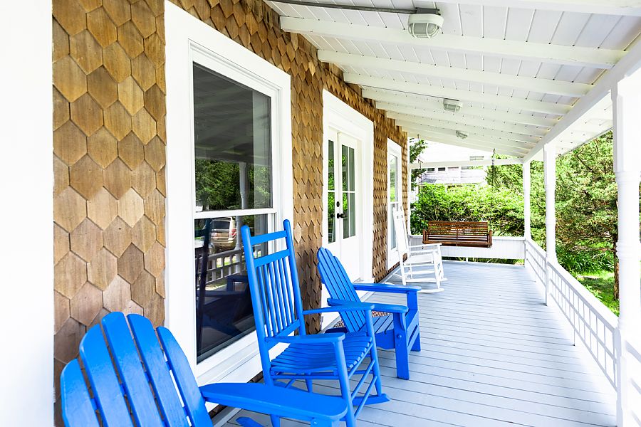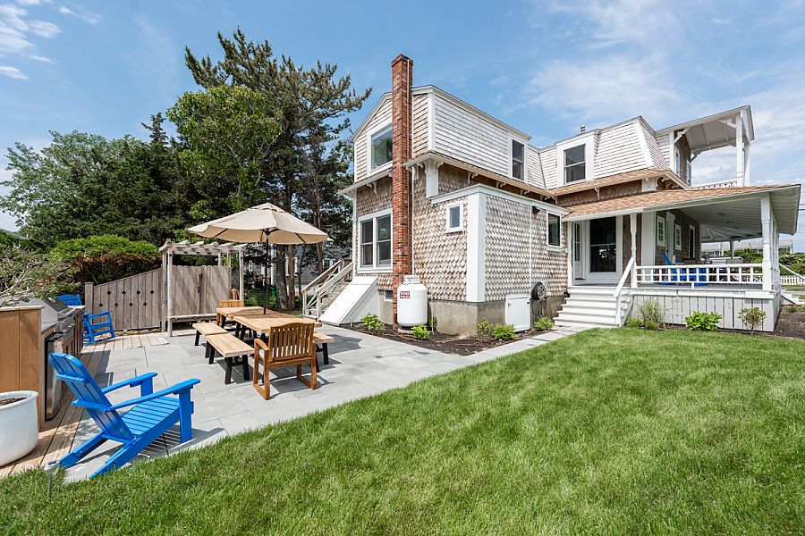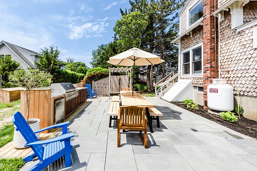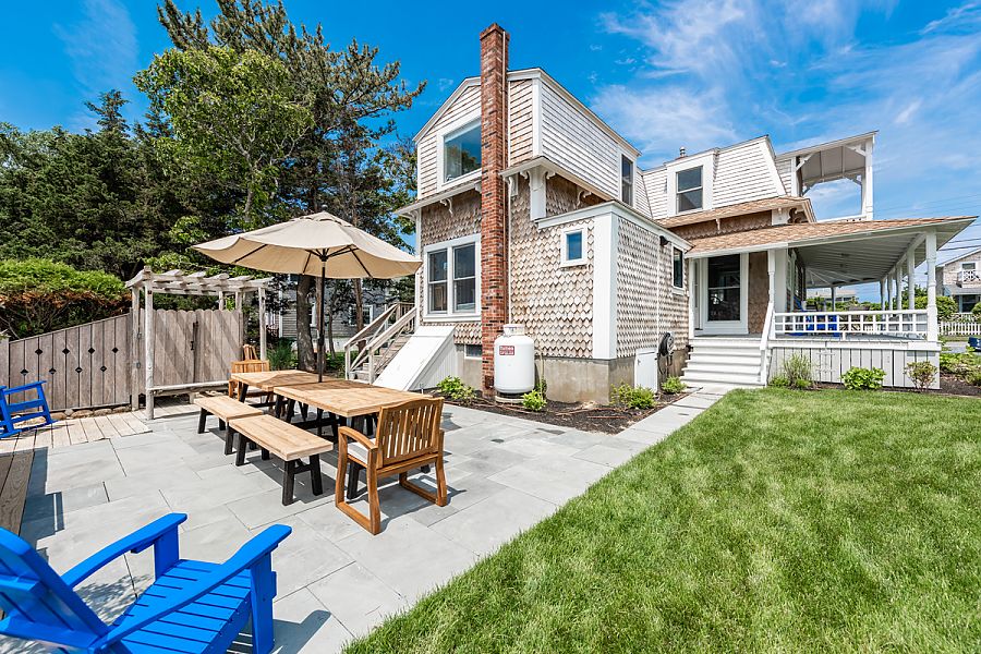 The wrap-around porch with multiple seating areas and the fabulous bluestone patio with an outdoor kitchen and patio dining seating 10, offer rental guests additional summer outdoor living space.