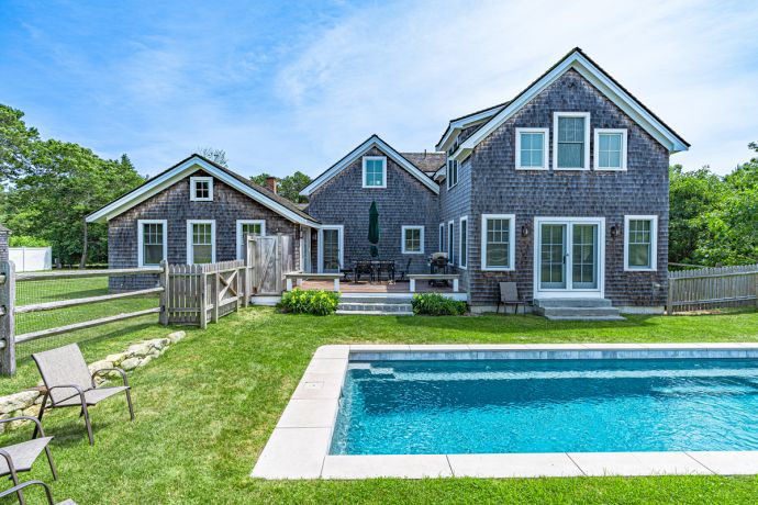 Newly Updated Vacation Home, Katama Area of Edgartown, 12 x 30' Heated Pool, 4 Bedrooms, 4.5 Baths, Separate Recreation Barn with Ping Pong Table, Large Screen TV and Game Area, Bike Path to Village Center and to South Beach